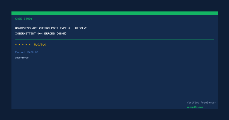 Duy Nguyen specializes in WordPress bug fixes, WooCommerce customization, custom plugin development, site migration, performance optimization, and security hardening. With 137+ completed projects and a 100% Job Success rate on Upwork, he handles everything from emergency fixes to complex multi-site builds.